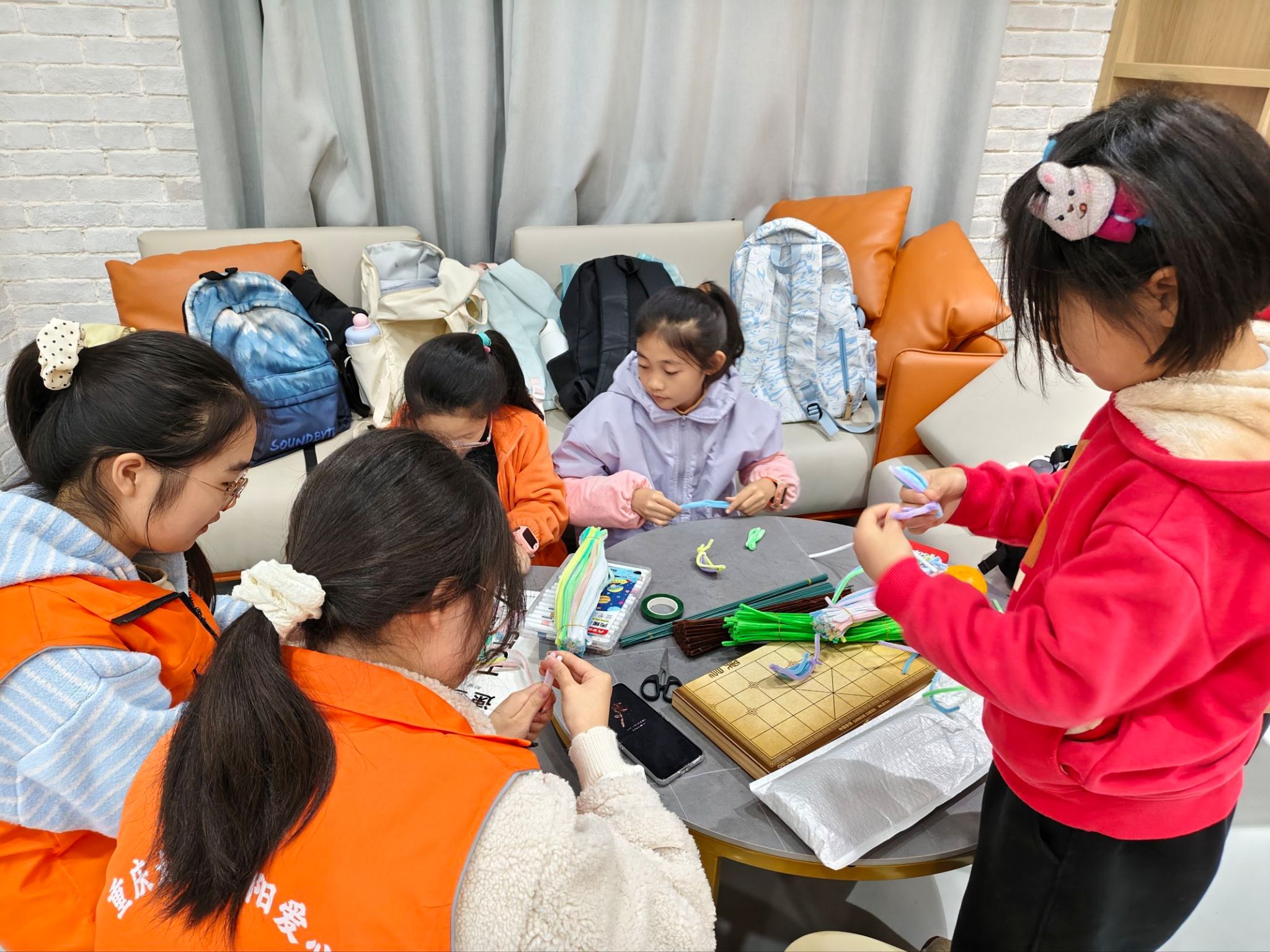 本次活动延续了“大手牵小手”的温情模式,在确保小朋友们安全的前提下,将课业辅导与趣味手工紧密结合。志愿者们针对小朋友们不同的学习进度进行一对一作业辅导,并开展了扭扭棒花束制作等创意活动。旨在通过寓教于乐的方式减轻学业压力,带领孩子们在手工制作中发现生活之美,锻炼动手能力。