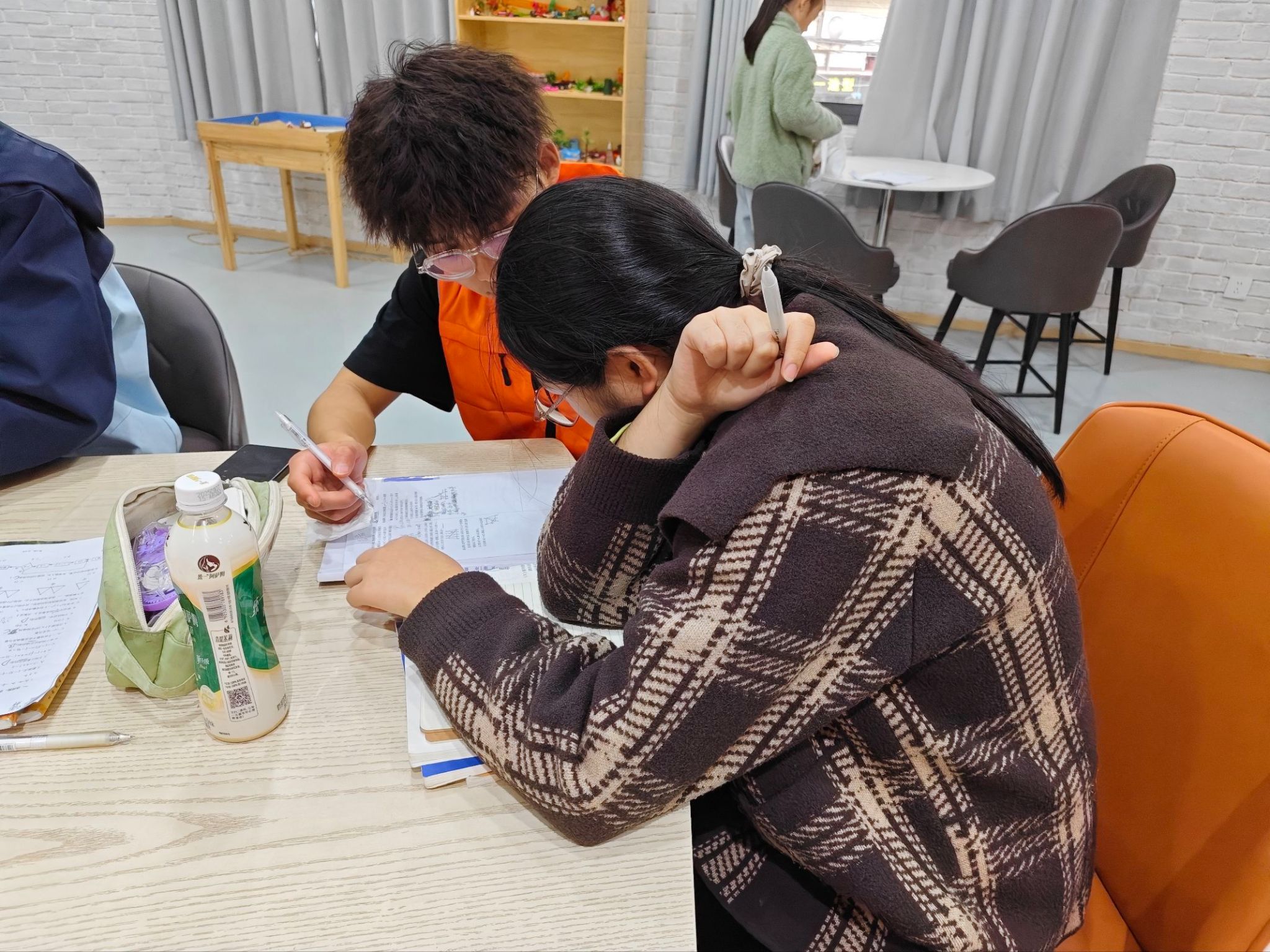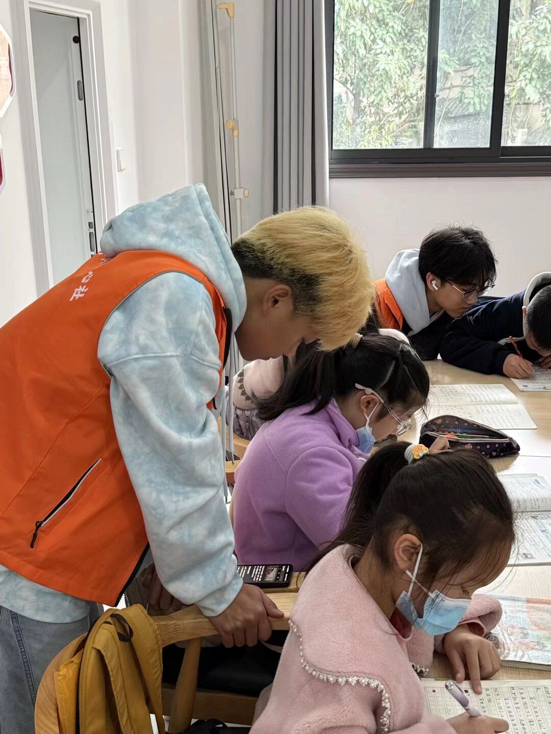 活动现场,身着橙色社服的志愿者们成为了最温暖的风景。他们俯下身子,耐心解答孩子们在作业中遇到的难题,仔细观察孩子们的解题思路,及时纠正误区,力争用最通俗易懂的语言让孩子们扫除知识盲点、学有所获。