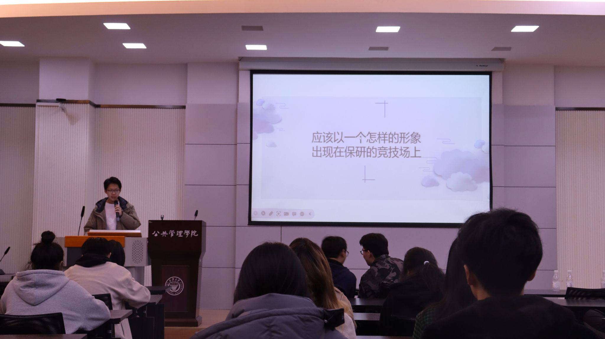 分享会伊始,徐柳老师向同学们强调了本次保研分享会的意义与关键性,并代表学弟学妹们向六位学长学姐们表示感谢。