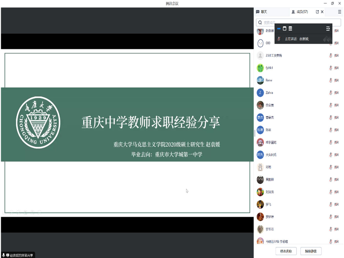 、马克思主义学院两学院研究生团委学生会联合举办的“职点迷津,研途领航”研究生就业实践能力提升交流会于腾讯会议线上顺利开展。