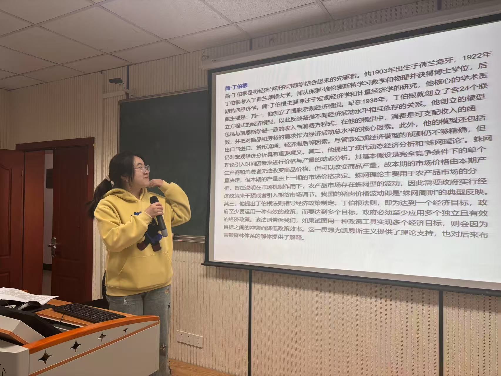 活动中,协会成员李榕榕担任主讲,条理清晰地介绍了几位诺贝尔经济学奖的获奖理论。1969年在动态经济分析的突出研究而获奖的拉格纳.弗里希和减.丁伯根,1970年凭借他提出的各种理论斩获殊荣的保罗.萨缪尔森,分享人巧妙结合日常生活案例,深入浅出地阐释理论核心要点,细致分析这些理论在公共政策制定、社会资源分配等公共管理领域的应用