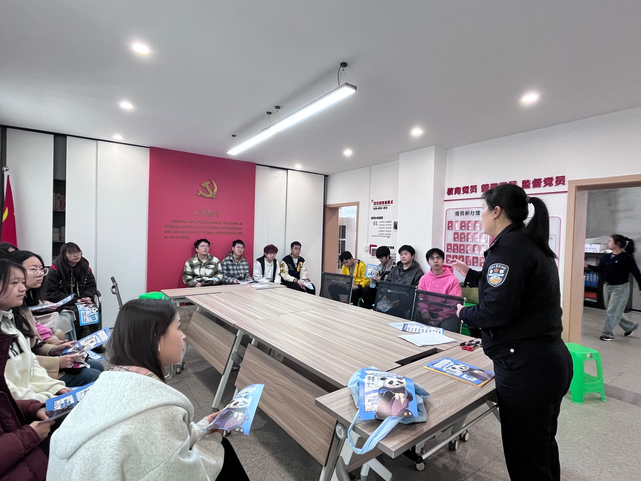 活动开始,社区民警为志愿者们带来了一场生动的防诈骗培训。民警详细介绍了网络购物诈骗、电信诈骗、养老诈骗等常见诈骗类型,并结合近期发生的真实案例,深入剖析了诈骗分子的作案手法与防范要点。志愿者们认真聆听、积极提问,为后续的宣传工作做足了准备。