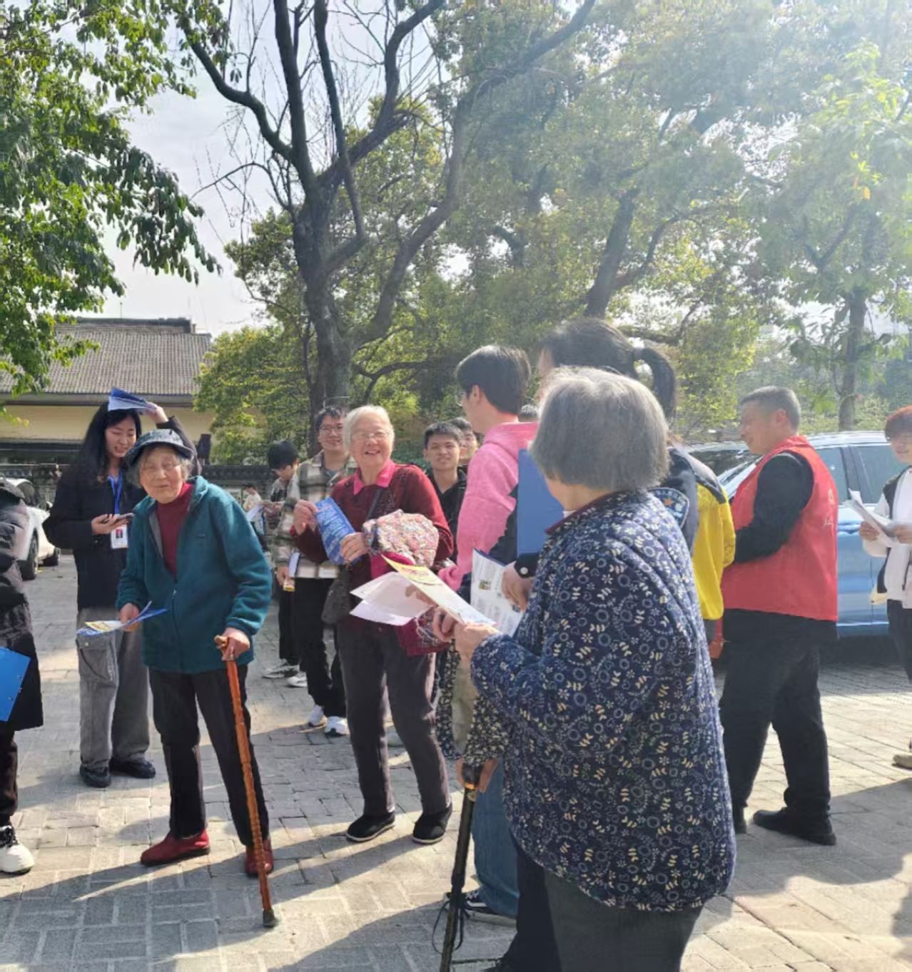 室外宣传点也热闹非凡。当日天气晴好,不少社区居民在社区广场上闲谈。志愿者们热情地递上宣传资料,讲解防诈知识,还邀请居民参与民意调查。社区民警现场设置了防诈知识问答环节,居民们踊跃参与,让他们在轻松愉快的氛围中,对诈骗手段有了更深入的认识。