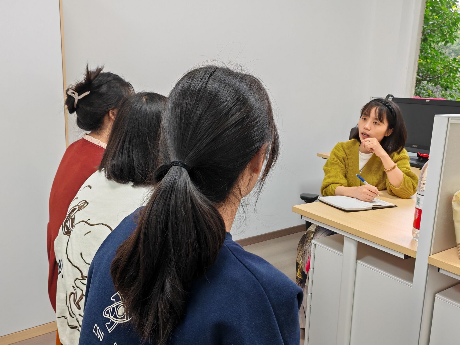 活动于一个阳光明媚的午后拉开帷幕,龚宏龄老师以她一贯的亲切和耐心,为学生们营造了一个轻松愉快的谈话氛围。龚老师首先关心了学生们的生活细节,从日常饮食到身心健康,她都一一询问,耐心倾听。学生们被龚老师的真诚与关怀所打动,纷纷敞开心扉,分享起自己的生活点滴。