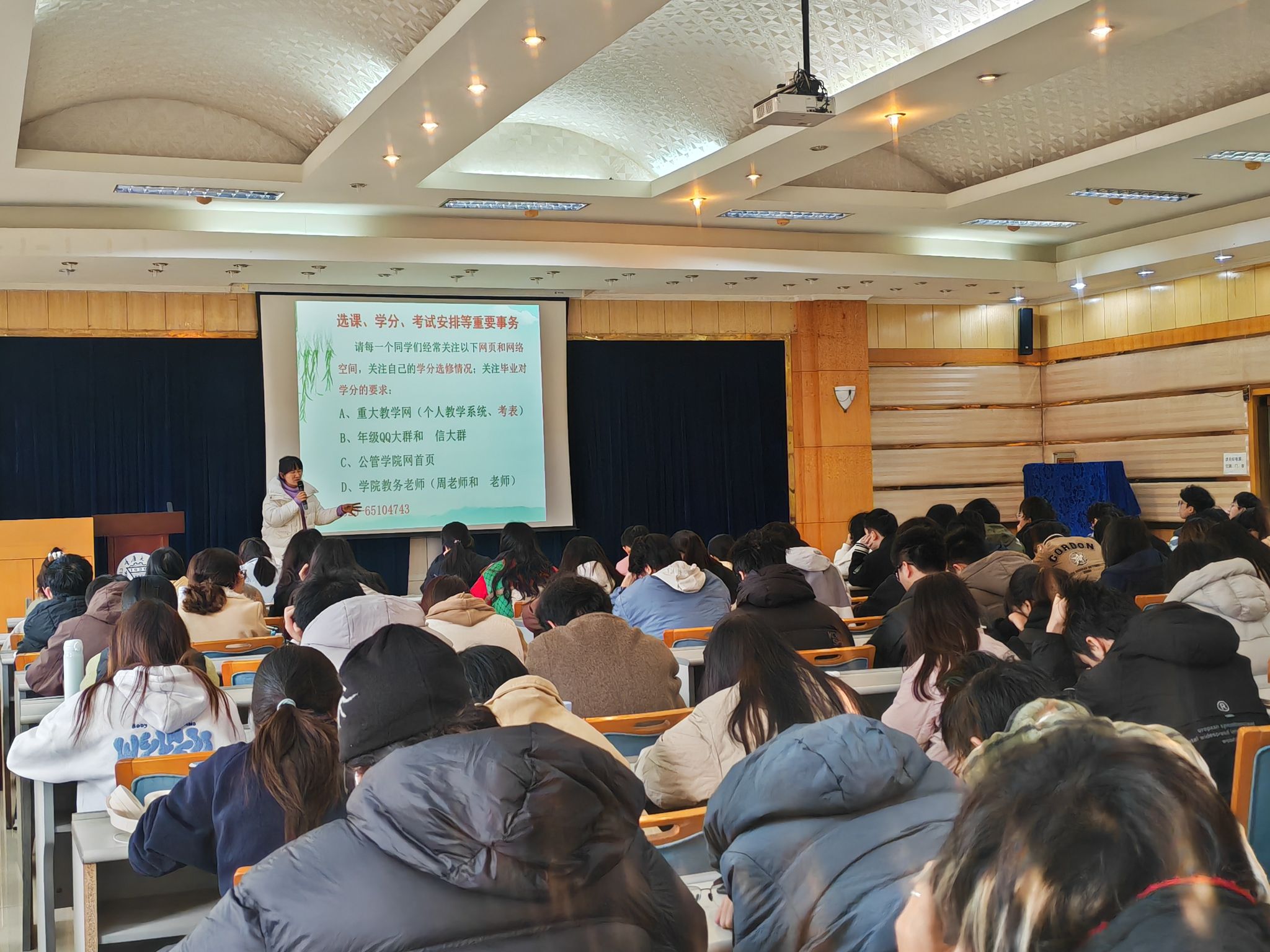 于学院楼202教室开展了本科生2023级学风、考风专题教育暨期末年级大会。本次会议由学院团委书记兼21、23级辅导员徐柳主持,2023级全体同学出席本次会议。
