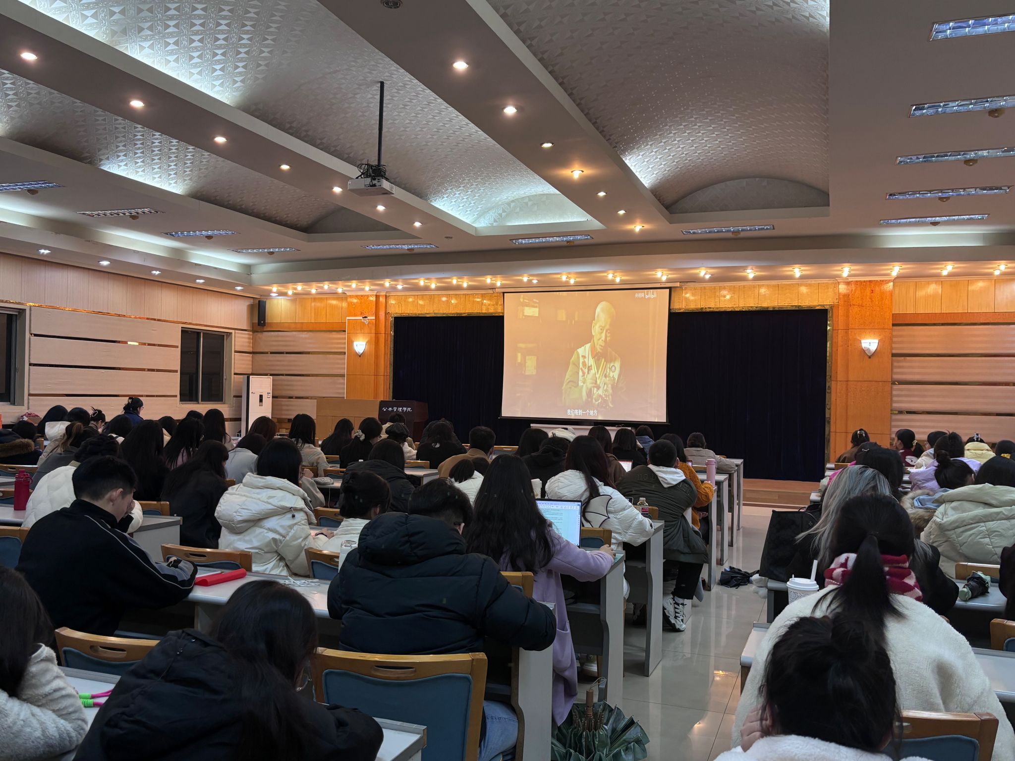 其次是“厚植爱国情怀,砥砺强国之志”爱国视频环节,主持人为大家播放一段以“红色记忆”为主题的军队离退休干部口述历史专题纪录片。影片从他们的主观视角出发,深情讲述了老一辈革命军人浴血奋战、保家卫国的感人故事,使同学们更真切地体会到先辈们忠于使命、无私奉献的崇高精神。