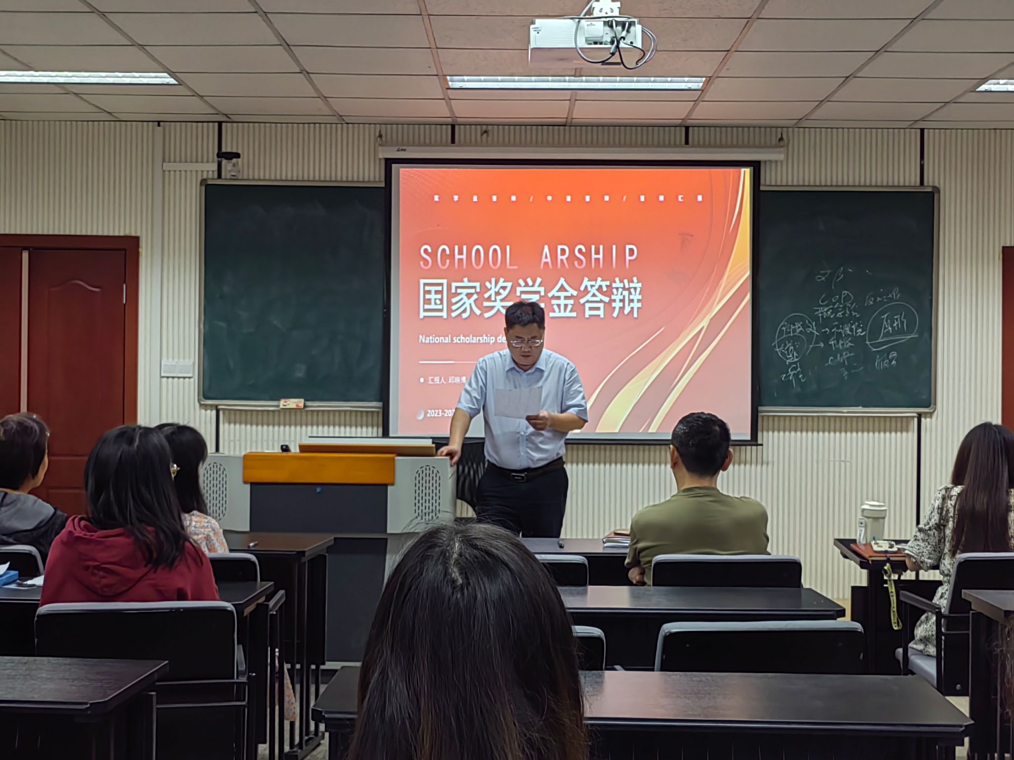 评选活动分为宣传发动、自主申报、公开答辩、评选结果公示四个阶段。评选会召开前,学院传达了学校发布的《关于做好2023-2024学年学生国家奖学金评选工作的通知》,从年级和班级两个层面进行广泛宣传,动员同学们参照相关标准积极申报,最后确定徐琪琦等八位同学参与本次的国家奖学金评定答辩会。