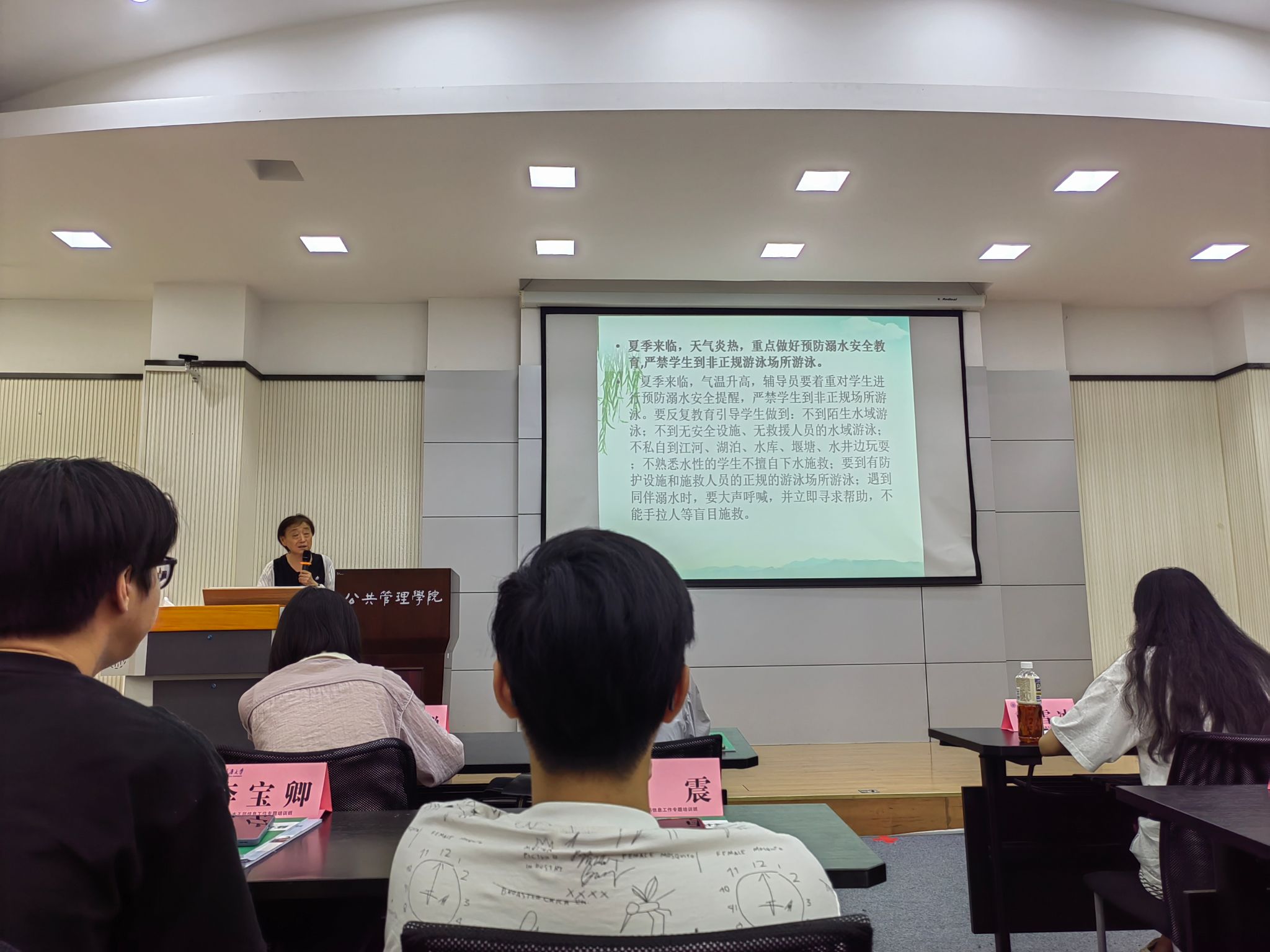 最后,因为暑假到来,为了同学们的安全着想,王老师再一次就预防夏季溺水一事进行提醒教育。严禁同学们到非正规游泳场游泳或是贸然下水救人,一定要保证自己的安全。