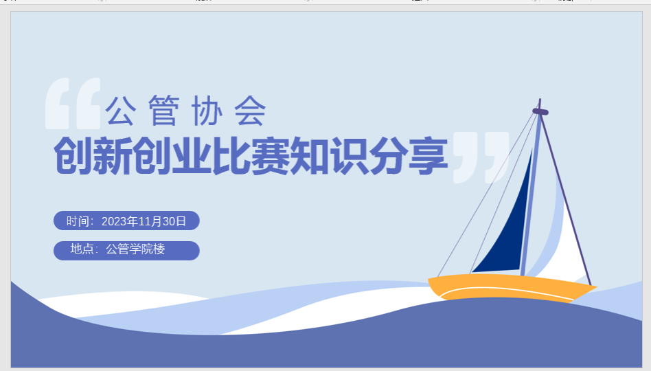 楼106举办了创新创业比赛知识分享活动。本次活动由公管协会会长周巳榆组织,公管协会全体社员到场,学院其他同学也积极报名参加。