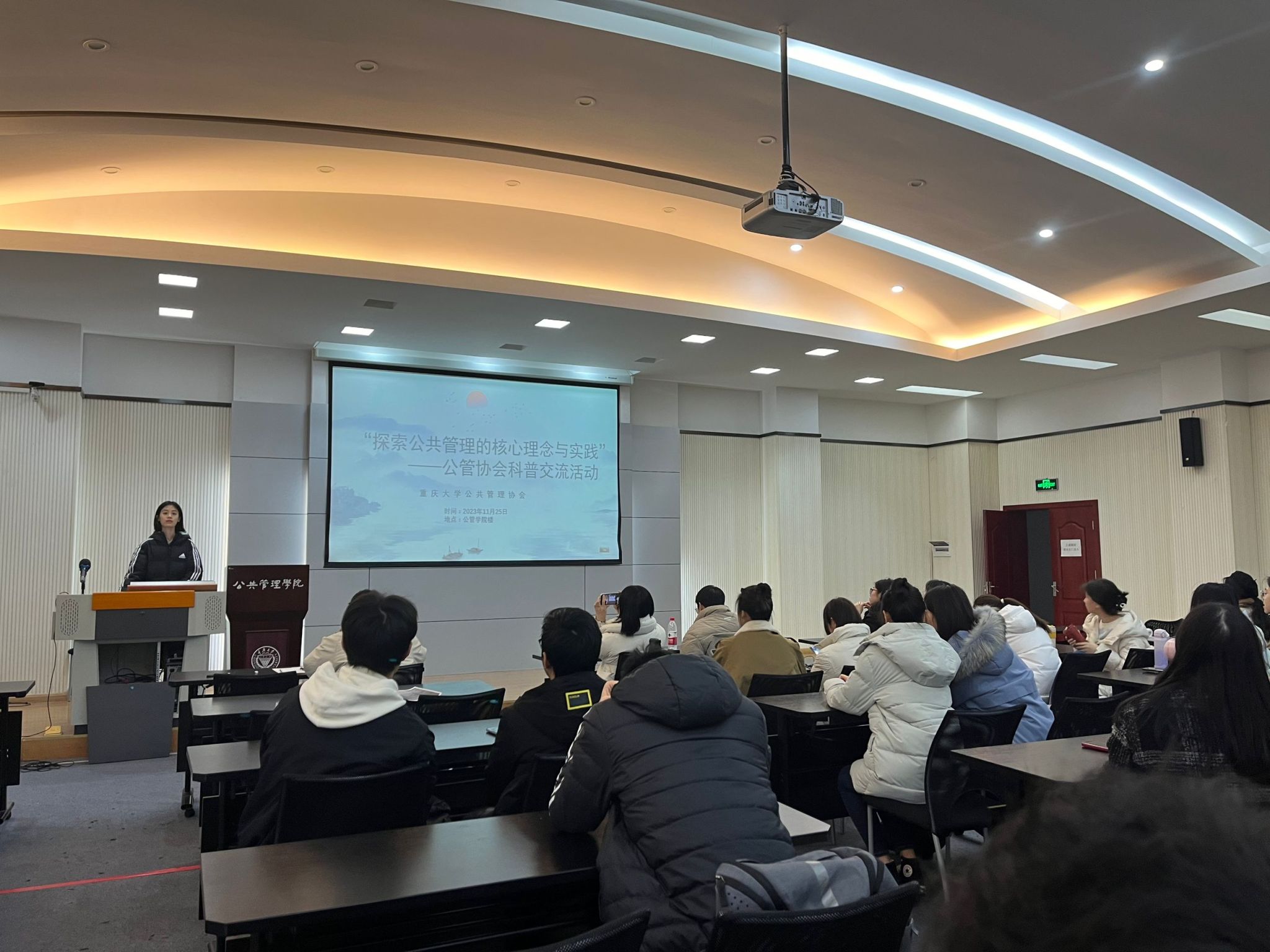 楼成功举办了一场。该讲座以“探索公共管理的核心理念与实践”为主题,由协会会长周巳榆主持,旨在积极推动同学们关于公共管理知识的交流活动。