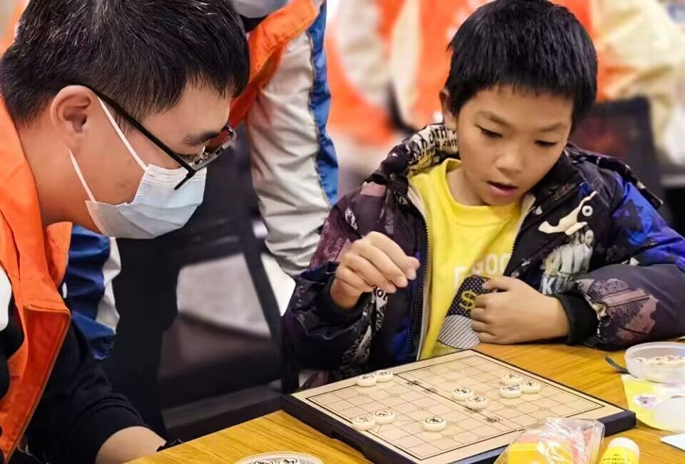 在“文明其精神”的同时,志愿者们仍不忘带领着孩子们“野蛮其体魄”。志愿者组织孩子在室内进行体育小游戏,并贴心的将桌子、凳子等带有棱角的物品包裹起来,以免有儿童不慎受伤。在玩累之后,他们还组织孩子们进行了狼人杀、谁是卧底等精彩的团队游戏。一时间,孩子们的欢声笑语不绝于耳,活动室里弥漫着欢快的空气。