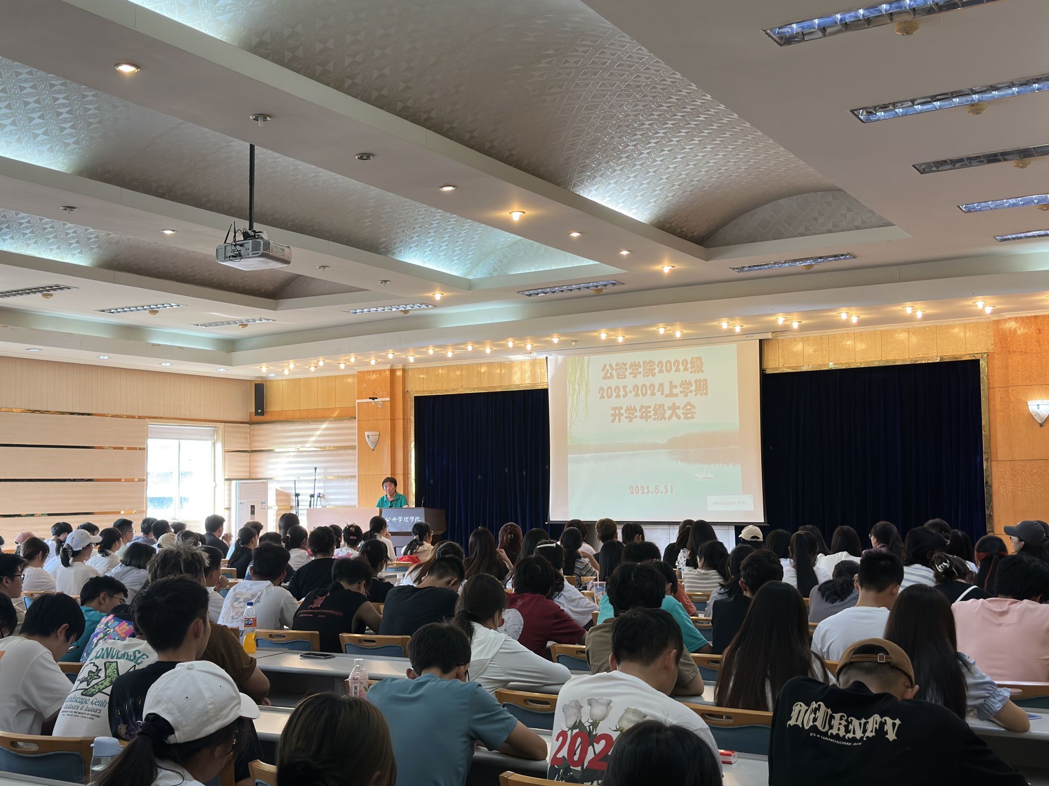 2022级2023-2024上学期新学期年级动员大会在学院楼202召开。本次会议由学办主任、22级辅导员王丽娟主持,22级全体同学到场参加。