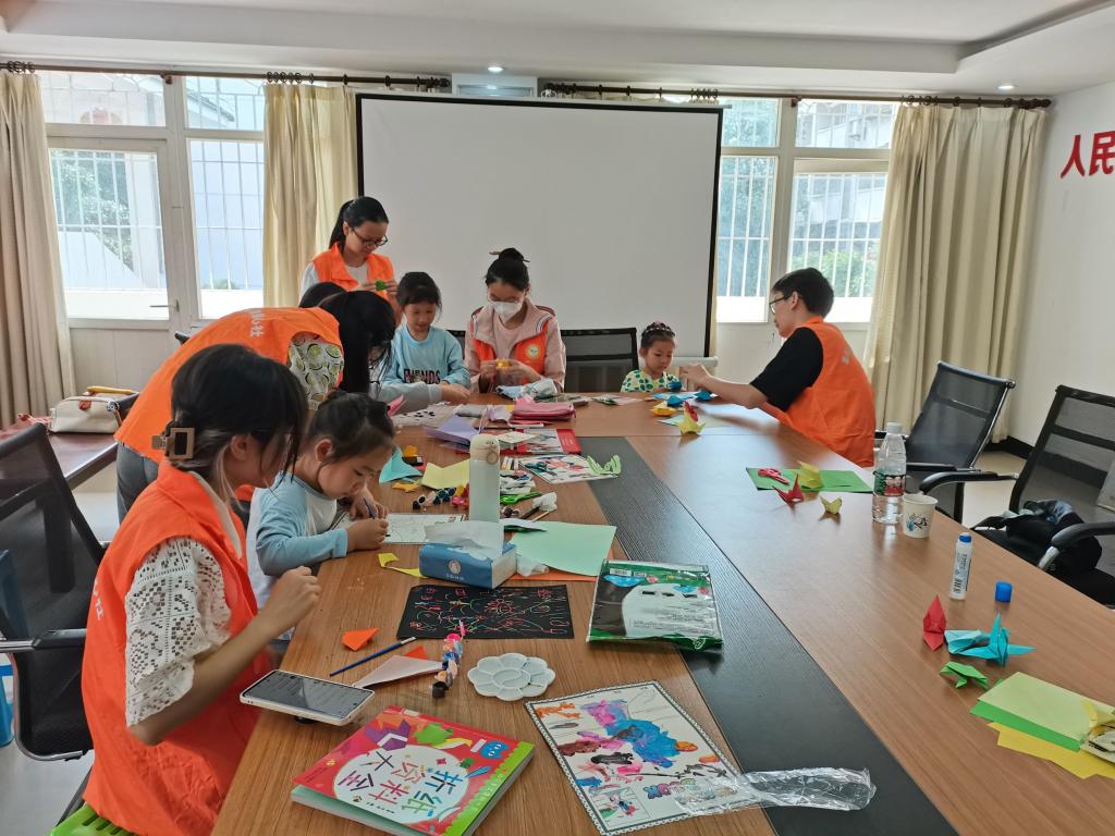 活动前半部分,志愿者们对孩子们开展了个性化的教学。针对孩子们的作业问题和薄弱点,志愿者们一一耐心解答。院子里阳光灿烂,学习任务完成得较快的小朋友们就在院子里和志愿者哥哥姐姐们玩耍起来。他们沐浴在阳光下进行123木头人、词语接龙、跳绳…随着参与进游戏的小朋友们越来越多,还玩起了老鹰捉小鸡、击鼓传花等游戏。一时间欢声笑语充斥了整个院子。活动的后半部分更加精彩,由志愿者们教孩子们学习折纸。首先,折纸社参与本次活动的社员们给小朋友展示了带来的精美作品,勾起了孩子们对折纸的兴趣,随后我们让孩子们选择自己喜欢的样式,由志愿者叫他们折。小朋友们学的很认真,最后都折出了自己心仪的花朵、兔子、船、千纸鹤等等。我们还带着孩子用水彩填画、彩纸刮画激发孩子们的创造力和想象力。小女孩不亦乐乎的制作自己的小夹子,用我们准备的一些小配件、小发夹、奶油胶等。整个活动充分激发了小朋友们的想象力,锻炼了他们的动手能力。最后,志愿者和孩子们一起用精美包装纸将他们制作出来的劳动成果都装好了当作礼物送给他们,能看出他们玩的很尽兴,收获颇丰。