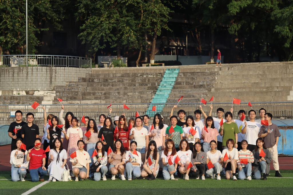 A区思群广场参加学校组织的升国旗仪式。学院党委副书记兼纪委书记袁晓浩、学办主任兼19级辅导员王丽娟、20级辅导员李珊珊、研究生辅导员李阳阳及本科生一支部、四支部全体党员、预备党员、发展对象、入党积极分子到场参与升旗仪式,共同祝福祖国母亲生日快乐。