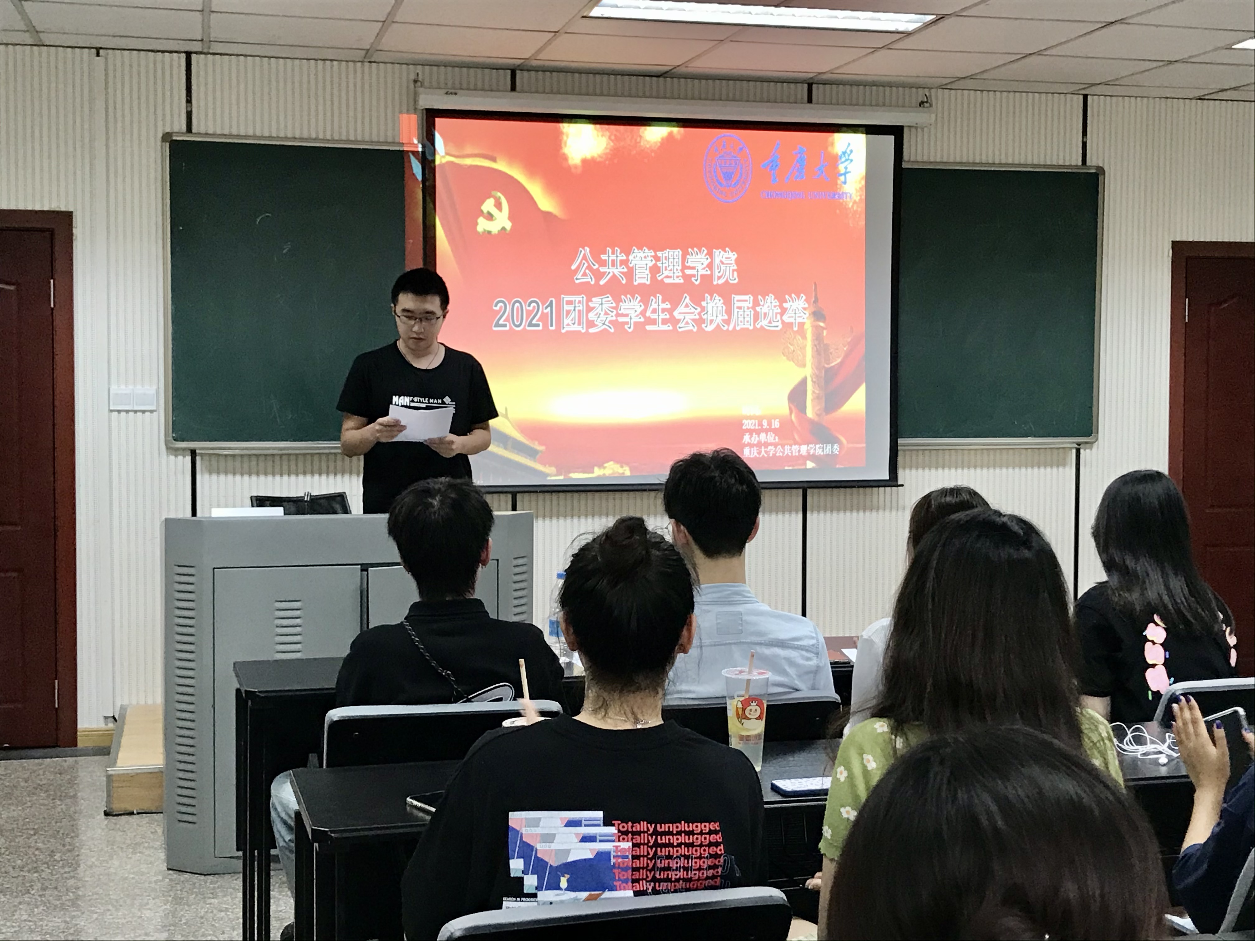楼104教室举行19级学院团委学生会换届仪式。本次换届由18级团委学生会主席杨青林主持。