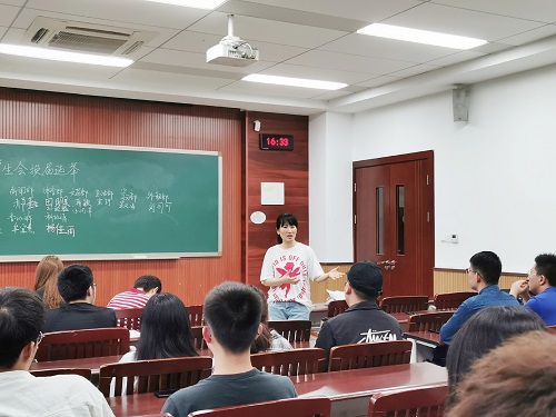 会议伊始,李韬、杨青林都简要对上一学年团委学生会的工作进行了评要与总结。李韬主席围绕“大三这一年作为一名学生干部应该从哪些方面做好工作”这一主题进行了充分的阐释,对新一届的团委学生会主席及各部部长们寄予了新的期望,希望大家能够在将来的“五四评优”中再创佳绩。杨青林主席简单地总结了过去的一个学年中,团委学生会举办的各项活动工作,并对同学们的积极付出表示感谢。