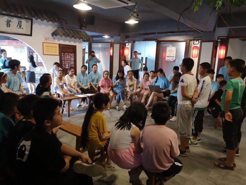 2019年7月18日下午一点半,学院“三下乡”实践团队成员与30名留守儿童在江苏省盐城市射阳县新坍镇的星火创业公社举办了文艺联欢会。实践团指导老师王丽娟和龚宏龄共同参与了此次联欢会。