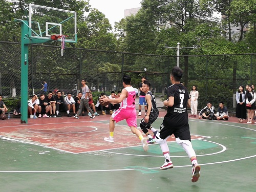 下午4点,乌云笼罩着天空,阴凉的天气十分适合大家观看一场精彩的篮球赛。此时的梅园篮球场四周早已围满了前来观看的同学。随着裁判把球抛到空中,比赛拉开序幕。公管代表队身着粉色队服,浑身上下洋溢着青春的活力。韩国h漫