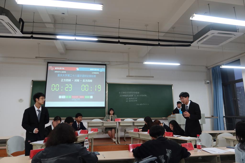 辩论队对阵的是环境与生态学院辩论队。两支队伍旗鼓相当,比赛现场紧张而又激烈。