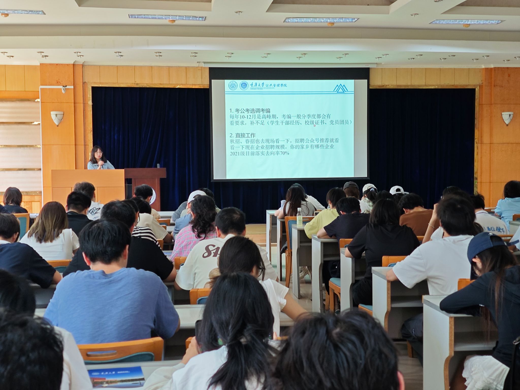 随后,李庆老师详细部署了暑期及大三安排。在个人职业规划方面,李老师首先强调要在新学年明确毕业方向,然后分别针对升学和就业两条路径进行了指导。升学同学要逐步了解目标院校和专业,着重关注今年最新录取动态,为自己未来的选择提供充实参考;就业同学应明确考公考编或企业方向,根据自身情况和目标单位要求,在下一学年针对性补齐差异,提升自身求职竞争力。