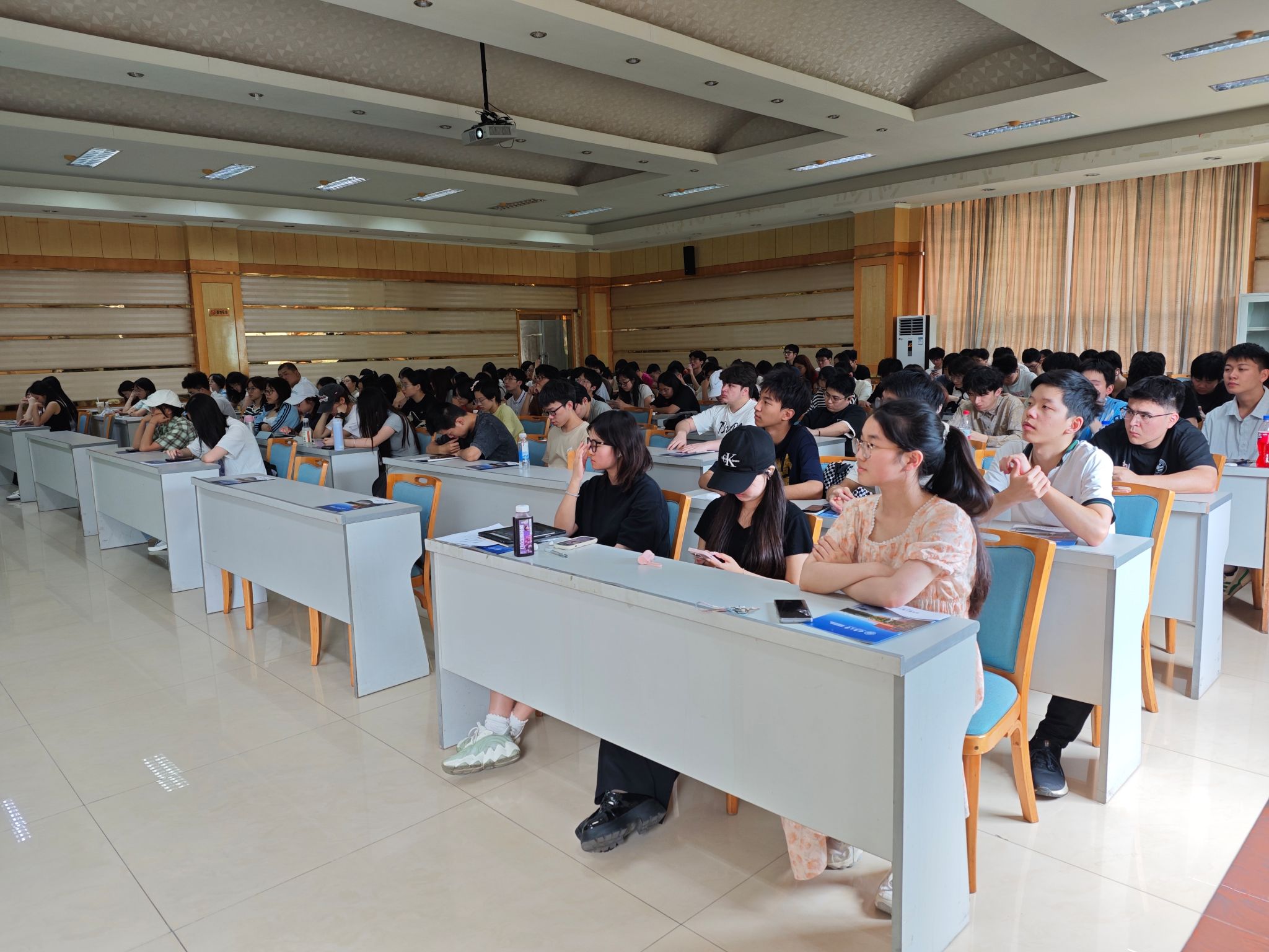 国际教育中心刘老师介绍留学项目,全体2023级本科生参会。