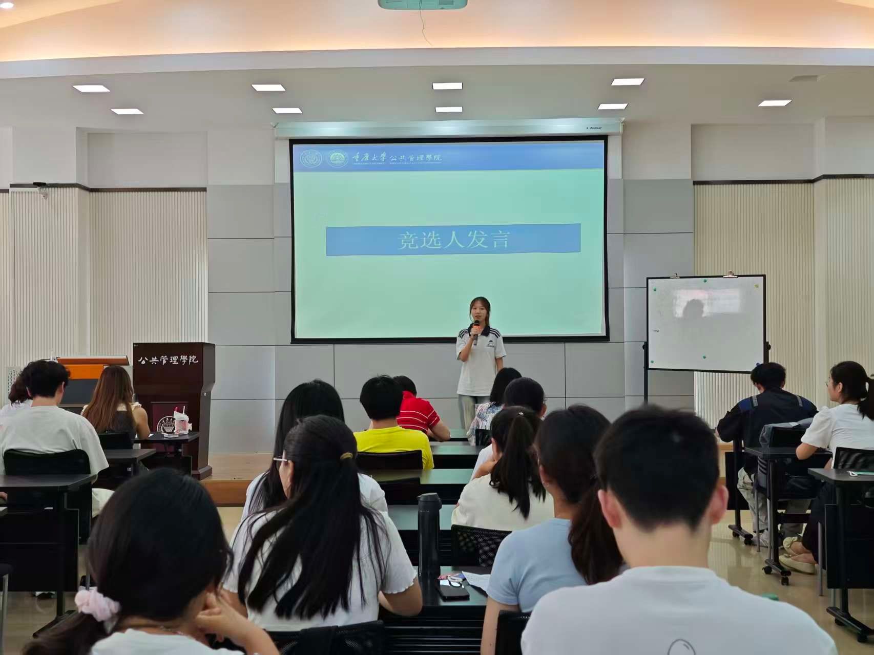 9月16日上午9时30分,换届竞选在2024-2025届学生会主席黄丹怡的主持下拉开帷幕。黄丹怡首先回顾上届工作,她提到,过去一年团委学生会成功组织 “公管杯”篮球赛,承办全校心理文化节单元活动,并在学校羽毛球赛、心理剧大赛、校运会等赛事中斩获多项荣誉,为学院赢得了良好声誉。