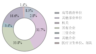 2016届硕士毕业生在政府机关单位共46人,占比32%;进入其他事业单位的共4人,占比3%,基本都是在公共管理、社会保障和社会组织中,之外还有教育和科学研究业;国有企业共49人,占比34%,主要在金融业,其次为交通运输业和信息传输业;三资企业共5人,行业分布各不相同;其他企业(如民营)共27人,主要是在金融业,其他包括居民服务维修业、文化娱乐业等等;进入高等教育单位的有12人,基本都是从事教学人员,学校主要包括重庆应用技术职业学院、重庆电子工程职业学院、重庆医药高等专科学校等等;剩下2人分别为医疗卫生单位和部队。