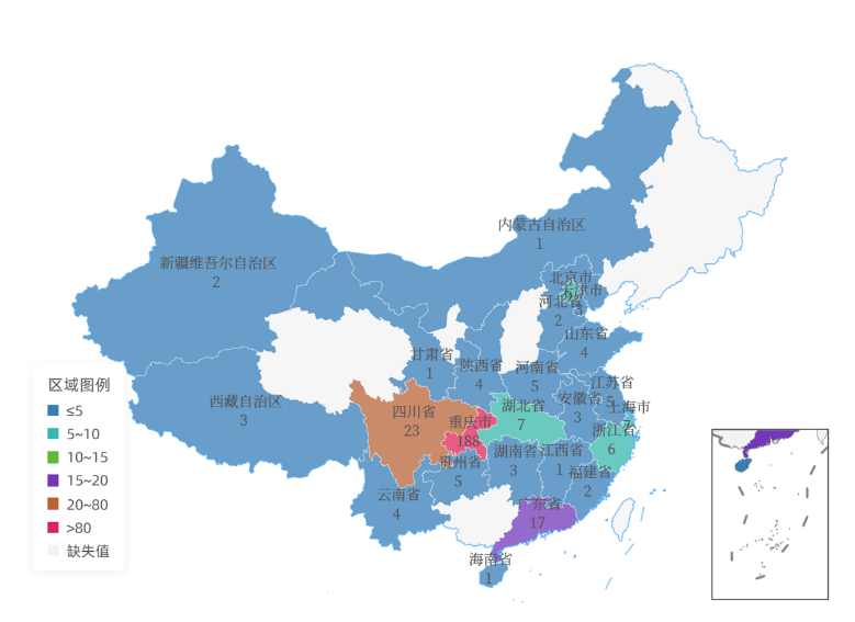 2017届硕士毕业生共208人选择就业,占硕士毕业生总数的95%。主要分布在22个省级行政区,其中72%的毕业生(149人)选择留在重庆市就业,主城区人数居多,主要分布在巴南区、江北区、沙坪坝区、渝中区、渝北区和九龙坡区,周围区县有合川区人数较多。其余就业人数较多的省级行政区有四川省(14人)、广东省(6人),另有1人去往西藏。