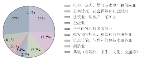 硕士生就业单位相比本科生更为集中,近一半在政府机关单位,共126人,占比43%;进入其他事业单位的共35人,占比12%,基本都在公共管理、社会保障和社会组织中;其次为国有企业共64人,占比22%,主要是制造业、金融业和交通运输业;在其他企业(含民营企业)中共48人,占比16%,主要是制造业和信息传输业;硕士生进入高等/中初教育单位15人,占比5%;其余则为医疗卫生单位(2人)、外贸投资企业(2人)、科研设计单位(2人)。