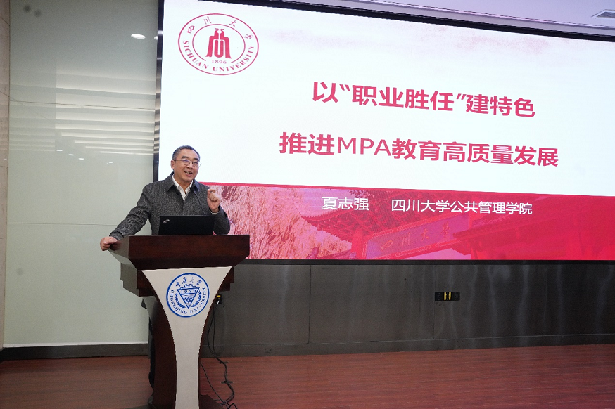 院长夏志强教授发表了题为《以“职业胜任”建特色,推进MPA教育高质量发展》的主旨演讲,分享了四川大学在MPA教育中的特色举措和实践经验。