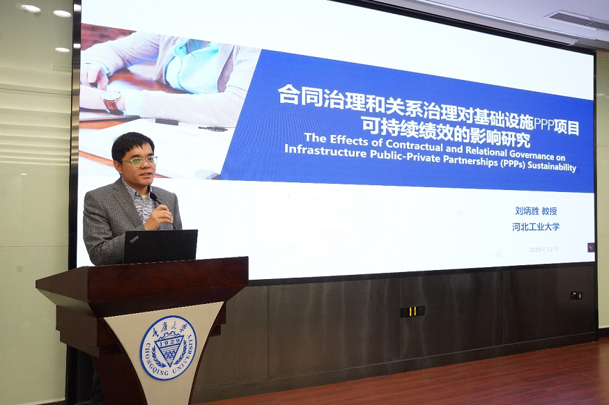 教育部公共管理类教指委委员、河北工业大学副校长刘炳胜教授发表了题为《合同治理和关系治理对基础设施PPP项目可持续绩效的影响研究》的演讲。他深入探讨了合同治理和关系治理在基础设施PPP项目中的影响,为公共管理实践提供了有益的启示。