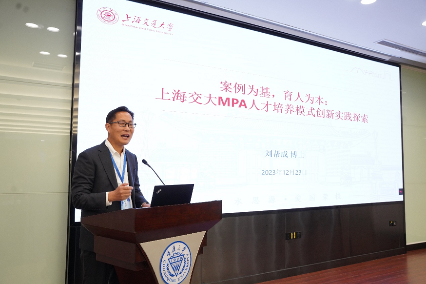 全国MPA教指委委员、上海交通大学国际与公共事务学院副院长刘帮成教授带来了题为《案例为基,育人为本:上海交大MPA人才培养创新》的主旨演讲。他从“案例育人的个人理解”与“以案例为抓手的人才培养模式创新”两个方面,详细介绍了上海交通大学在MPA人才培养方面的创新实践。