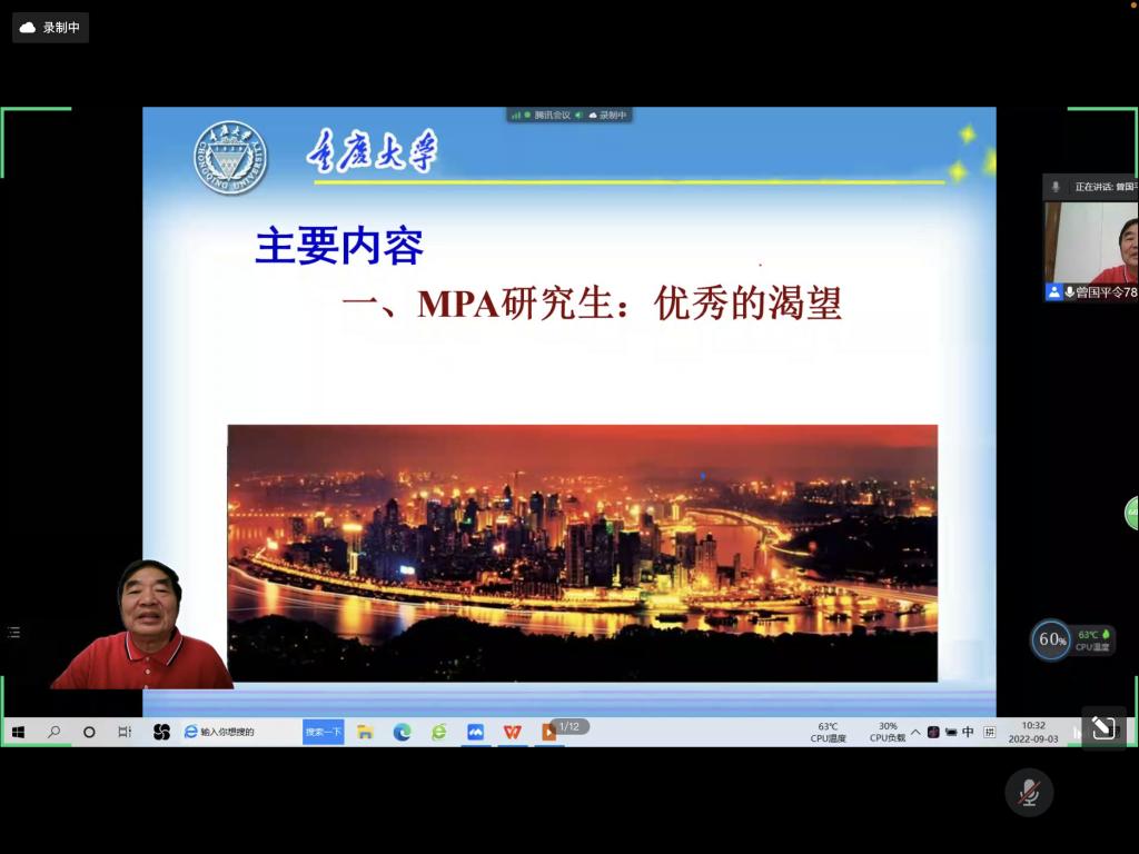 开学典礼后,学院还特邀西南地区首位登上百家讲坛的曾国平教授与MPA同学们分享“如何成为一名优秀的重大MPA研究生”。