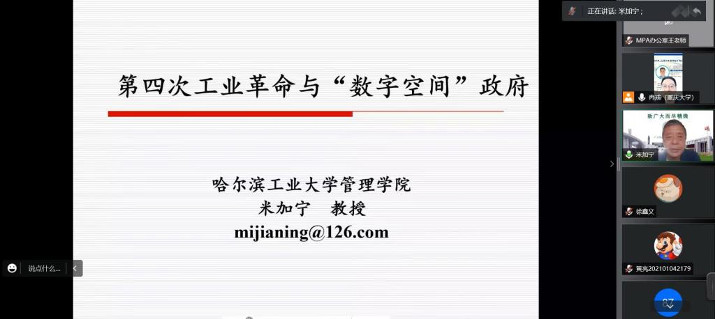 7月17日,哈尔滨工业大学管理学院教授,博士生导师,全国公共管理专业学位(MPA)教指委委员米加宁教授,应邀在线为韩国h漫
