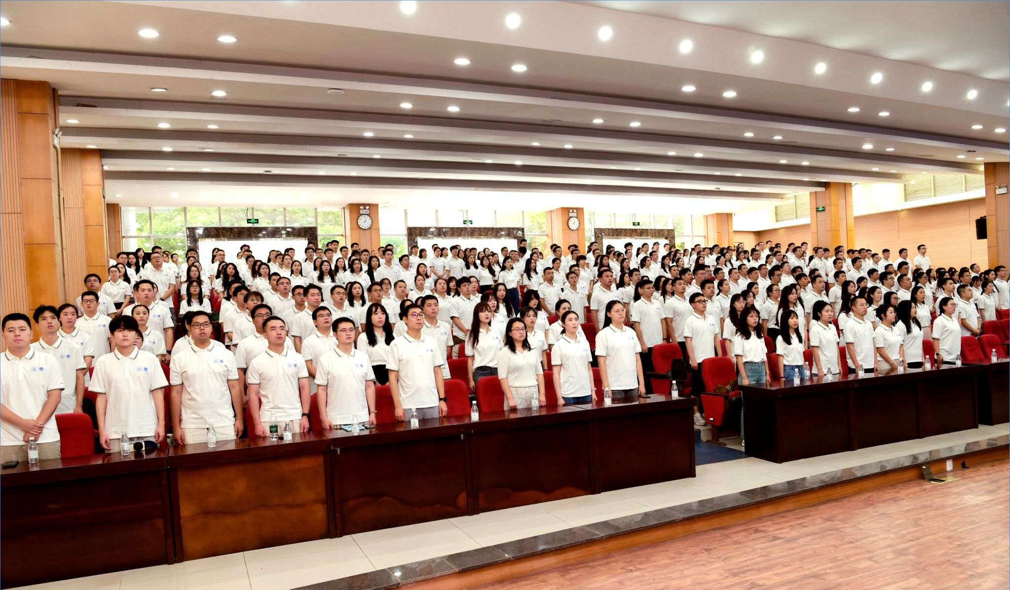 典礼伊始,王辉首先代表学院对 2025 级MPA研究生新生的到来表示热烈欢迎,并逐一介绍了到场的各位领导与老师。随后进入第二项议程 — 全体师生合唱中华人民共和国国歌,嘹亮的歌声回荡在报告厅内展现了重大人昂扬向上的精神风貌。