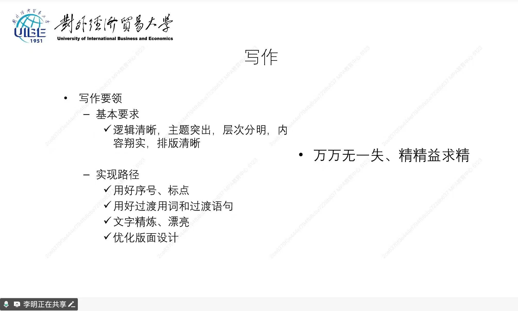 李明针对公共经济与政策方向的MPA论文选题与写作主题进行了阐述。他强调选题应紧密结合当前政策热点,并结合实际案例分析了选题的可行性与创新性。在写作指导环节,李明分享了如何构建清晰的逻辑框架、避免常见误区,并建议学生用好标点符号和过渡用词,文字精炼,达到主题突出、逻辑清晰的基本要求。针对云端互动的师生提问,他还回应了选题时效性与政策落地性的平衡问题,并提供了一系列实用资源,包括数据库推荐和参考文献范例。整个分享深入浅出,有利于帮助学生在理论与实践中找到论文写作的突破口。