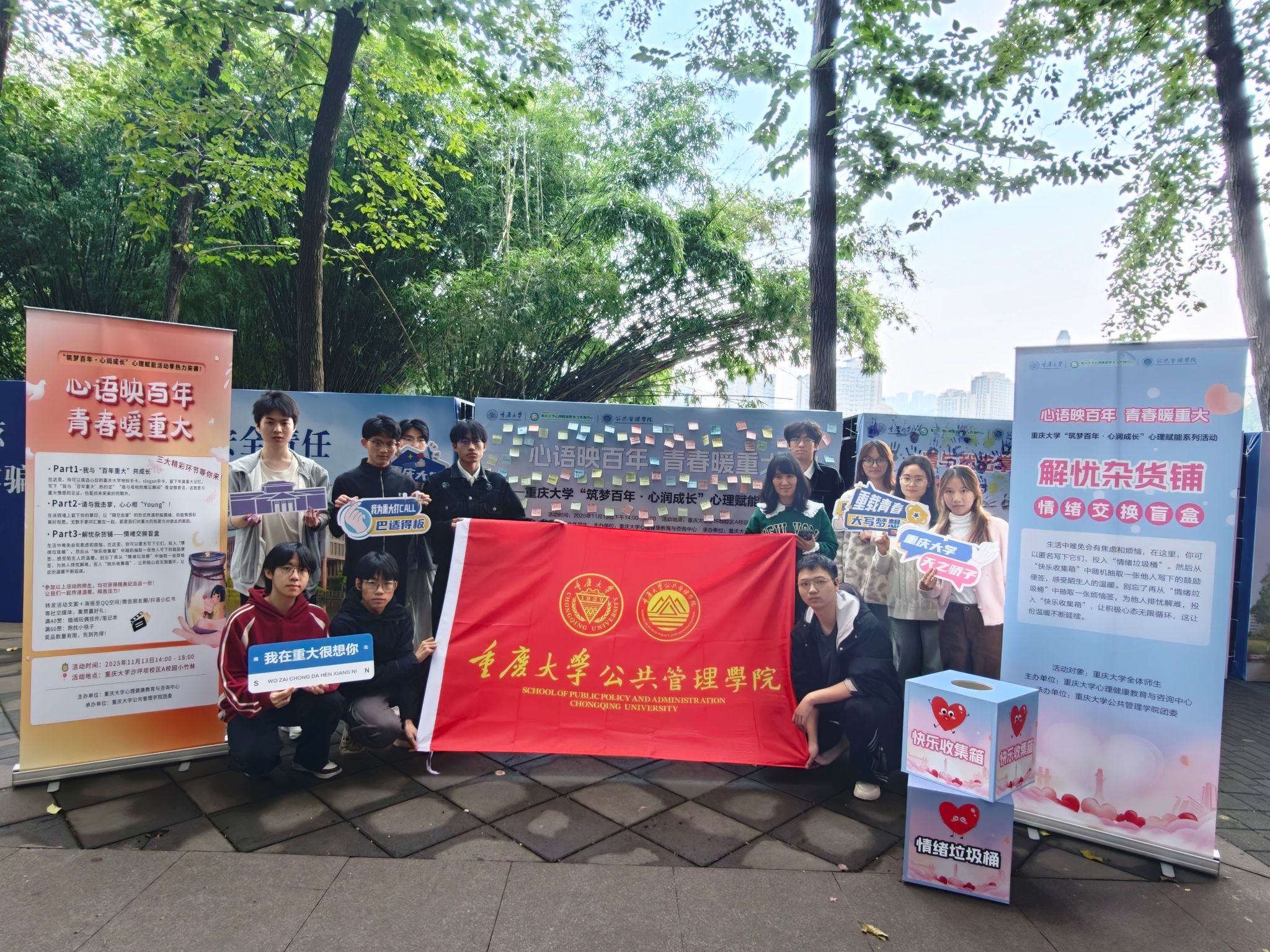 2025-12-12为深入贯彻《全面加强和改进新时代学生心理健康工作专项行动计划(2023—2025年)》要求,充分发挥心理健康教育活动的长效育人机制,营造积极健康、和谐温暖的校园文化氛围,2025年11月13日下午,由韩国h漫 心理健康教育与咨询中心主办、韩国h漫 团委承办的“心语映百年,青春暖重大”心理赋能活动在沙坪坝校区A校园小竹林顺利举行。活动吸引了全校学生的积极参与,反响热烈。 本次活动紧扣“筑梦百年·心润成长”主题,...