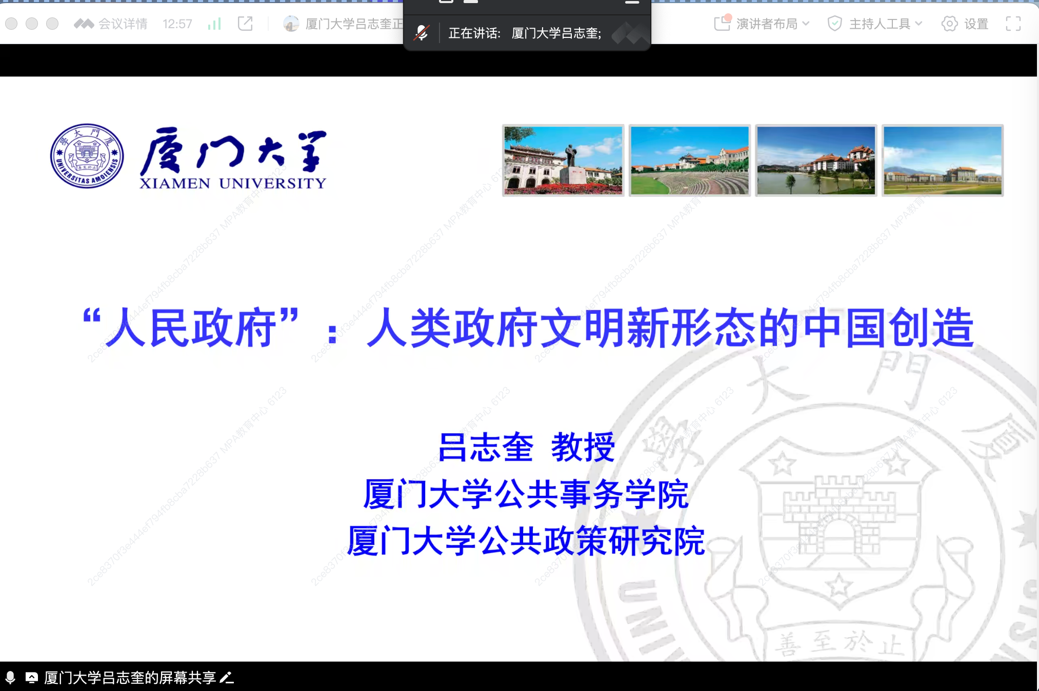 2025-06-302025年6月30日,厦门大学公共事务学院/公共政策研究院教授、博士生导师,全国公共管理专业学位(MPA)研究生教育指导委员会委员吕志奎,应邀在韩国h漫 开展“人民政府:人类政府文明新形态的中国创造”主题讲座。韩国h漫 王辉副院长主持了此次讲座,百余名师生通过云端共同参与这场知识盛宴。在讲座正式启幕前,王辉对吕志奎的学术资历和研究背景进行了简单的介绍,并对其光临表示了诚挚的欢迎。吕志奎深入探讨了新...