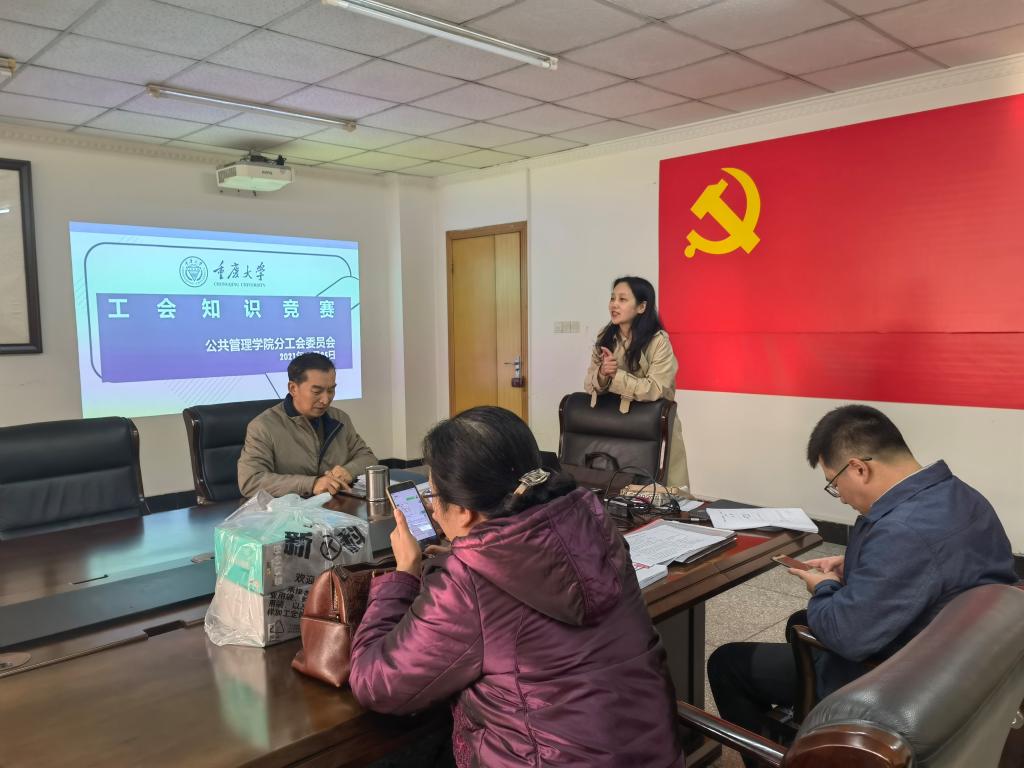 2021-11-262021年11月25日下午,在贯彻全国总工会《关于深入学习宣传贯彻党的十九届六中全会精神的通知》的要求下,院分工会委员会组织的“工会知识竞赛”活动在学院举行。本次“工会知识竞赛”由学院全体工会会员参加,按照系(办)所属的工会小组在学院五个教室同时进行,院工会主席张青及三位工会委员符晟、钟兴菊、潘丽霞和工会积极分子朱宇分别到组主持,工会委员周草臣进行前期工作准备。本次知识竞赛采取组内随机分成AB两队进行答...