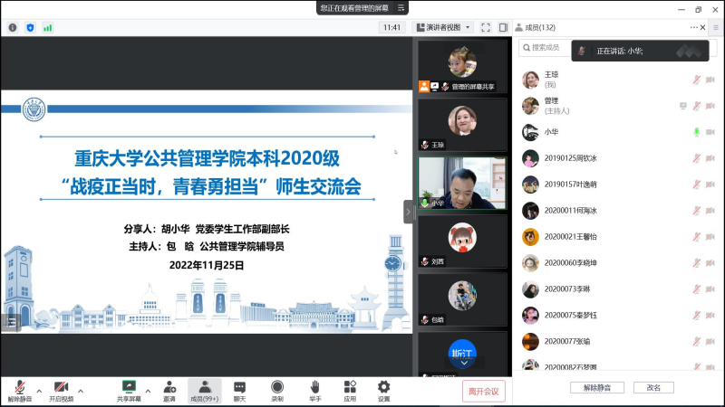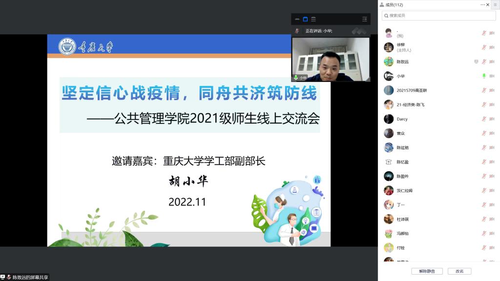 2022-11-26面对疫情的严峻考验,为了给同学们科学分析当前疫情形势,解读防疫政策,提高学生的防疫意识,增强同学们战胜疫情的信心,2022年11月12日晚19点韩国h漫 召开了“坚定信心战疫情,同舟共济筑防线”2021级师生主题交流会,特别邀请到韩国h漫 学工部副部长胡小华老师与同学们进行线上沟通和交流。交流会由学院2021级辅导员、团委书记徐柳老师主持,全体2021级同学参会。胡部长从三个方面进行了分享。首先,胡部长科学分析了...